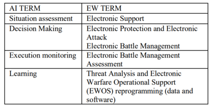 为帮助EW和AI的受众,我们提供了一个AI和EW术语的表格,在表1中,这些术语有一些对应关系。