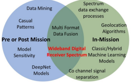 Haigh和Andrusenko的论文与EA之前的ES的数据融合观点一致,同时保持EP。因此,人工智能方法被应用于特定发射器的分析、特征描述和分类,作为数据融合之前的模式匹配工作。然后,这些方法被用于异常检测和因果关系搜索,以实现意图识别。这是一个信息漏斗,在EA/EP方面,这些方法更多的是优化适应性,而不是智能,这贯穿于整个杀伤链,并应用于任务管理的决策援助和与电子战令(EOB)和网络管理有关的人为因素。不难看出,AI态势评估、DM和机器学习(ML)能力与所有EW功能相关。每个认知型EW系统的第一步是电子支持(ES),以了解射频频谱。在人工智能界被称为情况评估,ES确定谁在使用频谱,他们在哪里和何时使用,以及是否有可以 "利用 "的模式。AI/ML技术可以使用特征估计、发射器特征和分类、数据融合、异常检测和意图识别。图11显示了任务前准备和任务后分析与任务中需求的重叠。