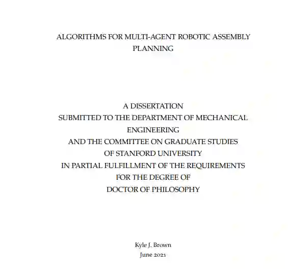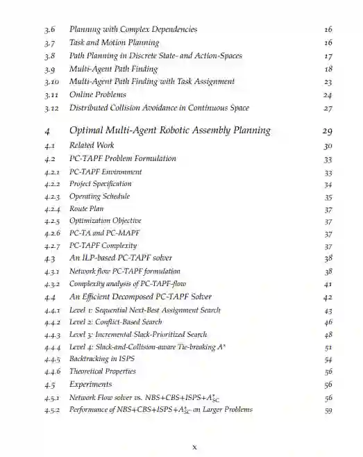 这篇论文提出了在自动化制造背景下的多智能体机器人装配规划的算法。我们的工作涉及到 "工厂自主权堆栈 "的许多部分。本论文的第一个贡献是引入了一个离散工厂问题的表述,其中包括时间延长的多机器人任务分配、任务间的优先权约束和避免碰撞的约束。我们提出了一种解决此类问题的有效方法。我们算法效率的两个关键是它将任务分配和路线规划解耦,以及它能够利用一些机器人在自己的时间表中被推迟而不对工厂的整体性能造成任何负面影响的情况。