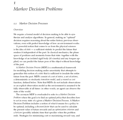 这本书是对卡内基梅隆大学Drew Bagnell在自适应控制和强化学习课程(2010,11,14),Byron Boots在佐治亚理工大学(2019)和Sanjiban Choudhury在康奈尔大学(2022)所做课堂笔记的编辑合集。我们感谢Chris Atkeson共同讲授了这门课的第一个实例,并塑造了我们在这里思考问题的方式。这本书——以及它所依据的类——旨在提供一套实用工具,为机器与世界的交互构建决策程序。我们的应用程序从视频游戏和网络搜索到机器人操作和自动驾驶汽车。这个领域是广阔的,所以我们的观点必然是狭隘的。我们明确地不做严格的尝试,而是专注于直觉和建立这种直觉的非正式数学论证,以及我们在艰难的决策问题上多次看到的技术。我们试图概括出我们在实践中最有可能采用的技术和思维方式。在整个过程中,我们试图指出严格的衍生和原始文献的主题。这些笔记的设计基于概率的基本技术(条件概率、条件独立、高斯、积分技术、贝叶斯方法和推断、滤波和时间序列模型)、线性代数(计算和基本线性分析)、优化(梯度、Hessians、度量、Krylov子空间)和机器学习(泛化、优化、无后悔/在线学习、反向传播和核方法)。