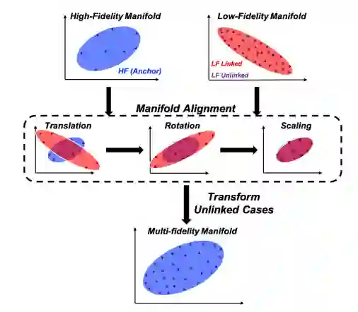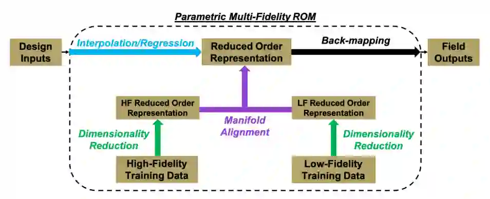 为了使前面讨论的方法适用于CFD解决方案,必须以相同的网格尺寸、节点连接和基础物理模型拍摄快照。Manifold Alignment(MA)被认为是增强这些单保真ROM技术的关键因素,因此它们可以利用多保真来源的数据(Wang & Mahadevan,2009)(Wang & Mahadevan,2008)。这使得在训练预测模型时,只要每个数据集的基础系统是相关的,就可以同时利用来自不一致配方的数据集(Perron, et al., 2020)。特别是,Procrustes MA已被证明在构建多保真ROM方面表现良好,因为它能够利用来自不一致来源的数据,而不需要修改原始训练集(Perron, et al., 2020)。(Decker, et al., 2021)开发了MA在CFD ROM中应用的数学公式。