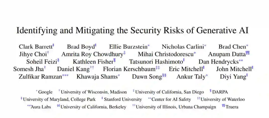 每项重大的技术发明都会重新引发双重用途困境——新技术有可能用于善也有可能用于恶。生成式人工智能(GenAI)技术,如大型语言模型(LLMs)和扩散模型,已经展示了显著的能力(例如,在上下文中学习、代码自动完成以及文本到图像的生成和编辑)。然而,攻击者同样可以利用GenAI来生成新的攻击手段,并增加现有攻击的速度和效果。 本文报告了在谷歌(由斯坦福大学和威斯康星大学麦迪逊分校共同组织)举行的一个关于GenAI带来的双重用途困境的研讨会的发现。这篇论文并非旨在全面探讨,而是试图综合研讨会中一些有趣的发现。我们讨论了社群在这个话题上的短期和长期目标。我们希望这篇论文既能为这一重要话题提供一个讨论的起点,也能提出一些研究社群可以努力解决的有趣问题。 概述