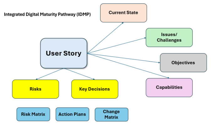 组织变革矩阵协助组织评估数字采纳的文化和运营就绪度,识别潜在障碍、变革驱动因素以及促进平稳过渡所需的必要干预措施。通过系统分析利益相关者参与度、领导层支持和人力适应性,该工具使组织能够战略性地实施数字成熟度模型,同时培育有利于长期采纳和增长的环境。风险矩阵提供了一种结构化方法,用于识别、评估和缓解与数字转型工作相关的风险。鉴于技术数据管理、互操作性和网络安全的复杂性,该工具使组织能够主动应对潜在的脆弱性、合规风险以及集成挑战。通过风险优先级排序和缓解策略,组织可以在IDMP实施过程中做出明智决策,以最小化运营中断和维持风险。此外,行动规划框架作为执行的路线图,确保数字转型计划保持目标导向、可衡量和可扩展。这种结构化方法支持里程碑跟踪、资源分配和绩效评估,使组织能够保持势头并随时间推移持续改进数字能力。行动规划还有助于将IDMP实施与更广泛的国防部现代化目标对齐,确保利益相关者协调和政策合规性始终是数字成熟度进展的组成部分。为了进一步增强安全数据交换,IDMP实施了标准化、可互操作的机制,以消除数据碎片化和安全漏洞。通过结构化的数据共享协议,国防部及其合作伙伴可以简化对关键技术数据的访问,改善国防机构与承包商之间的协作,并增强供应链韧性。