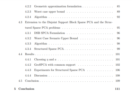 鉴于主成分分析在我们的研究和机器学习中的重要性,我们也提供了一种解决稀疏主成分分析问题的新方法。该方法是第一个一步生成多个稀疏主成分的方法,而现有的技术依赖于压缩迭代生成主成分。提出的方法(GeoSPCA)生成高质量的解决方案,将压缩技术解释的方差提高了一个数量级以上。