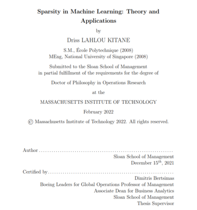 稀疏性在机器学习中扮演着关键的角色,原因有几个,包括可解释性。可解释性是由从业者或科学家寻求的。事实上,一方面,可解释性在医疗健康等实践中可能是关键,在这些实践中,黑盒模型不能用于为患者开具治疗处方。另一方面,可解释性对于理解使用机器学习建模的现象(如等离子体电磁发射)至关重要。除了可解释性,稀疏性还有其他一些重要的应用,如提高模型的预测能力,降低运营和投资成本。 整数优化在处理稀疏性的方法概念中是一个非常有效的工具。它为构建稀疏模型提供了一个严格的框架,并已被证明比其他方法(包括使用稀疏诱导正则化规范的方法)提供了更精确和稀疏的模型。本文主要研究整数优化在稀疏性问题中的应用。