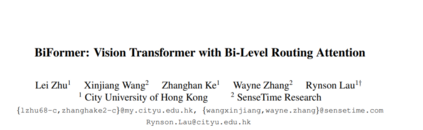 作为视觉transformer的核心构建模块,注意力是捕捉长程依赖关系的强大工具。然而,这种能力是有代价的:它会带来巨大的计算负担和内存占用,因为要计算所有空间位置上的成对token交互。一系列工作试图通过将手工制作的和内容无关的稀疏性引入注意力来缓解这个问题,例如将注意力操作限制在局部窗口、轴向条纹或膨胀窗口内。与这些方法相比,本文提出了一种新的通过双层路由的动态稀疏注意力,以实现具有内容感知的更灵活的计算分配。具体来说,对于一个查询,首先在粗粒度的区域级别上过滤掉不相关的键值对,然后在剩余的候选区域(即路由区域)中应用细粒度的token-to-token attention。本文提供了所提出的双层路由注意力的一个简单而有效的实现,利用稀疏性来节省计算和内存,同时只涉及GPU友好的密集矩阵乘法。用所提出的双层路由注意力建立了一个新的通用视觉transformer,称为BiFormer。由于BiFormer以查询自适应的方式关注一小部分相关标记,而不会分散其他不相关标记的注意力,因此它具有良好的性能和较高的计算效率,特别是在密集预测任务中。在图像分类、目标检测和语义分割等计算机视觉任务中的经验结果验证了所设计的有效性。代码可以在https://github.com/rayleizhu/BiFormer上找到。