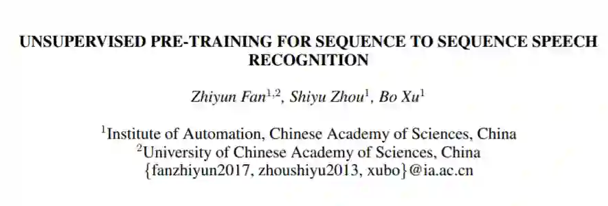 题目: Unsupervised pre-training for sequence to sequence speech recognition