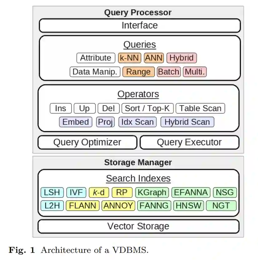 在本文中,我们首先从通用VDBMS的角度对这些技术进行调研,将它们分为适用于查询处理和适用于存储和索引的技术。查询优化和执行与核心查询处理器分开处理。在这些讨论之后,我们将这些技术的理解应用于描述现有的VDBMS。