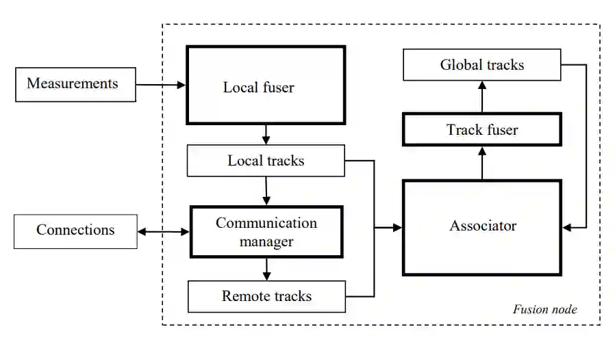 由多个异质传感器组成的网络中的数据融合是一个重要的研究领域,特别是用于态势感知的目标跟踪。越来越多的传感器和移动传感器的能力引起了哪些数据需要通信以及如何通信的问题。在一个最佳设置中,所有的传感器都能与中央融合中心进行通信。由于通信带宽有限,这种情况并不总是存在,而且对于大型的传感器网络来说,这可能不是最好的解决方案。分布式融合架构提供了一种更加灵活和稳健的数据融合方式,因为某种程度的融合可以由传感器本身作为本地融合节点来执行。本地融合的数据是传感器数据的一个更紧凑、更精细的表示,可以与网络中的其他节点进行交流。此外,这使得只暴露出融合数据而不是原始数据的传感器得以整合。