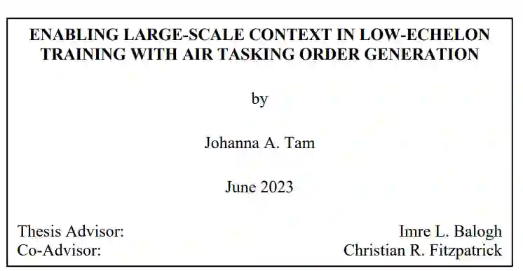在训练中,从演习文件中获取背景信息可增强真实感。在真实世界行动中创建的文件必须为训练演习而制作,这是一个耗时耗力的过程,产生的文件无法用于海军陆战队的模拟演习。海军陆战队正在制作 "实时、虚拟、建设性训练环境"(LVC-TE),使分离的部队能够与模拟演习相结合。LVC-TE 包括演习设计工具,但不包括演习文件制作工具。本论文的重点是为直接空中支援中心(DASC)使用 FLAMES 自动仿真训练器(FAST)进行的指挥与控制(C2)演习制作空中任务指令(ATO)。DASC 部队无法获得真实世界的 ATO 进行演习,这意味着 ATO 必须从档案中提取或手工创建。存档的 ATO 包括过时的飞机和弹药,而手工输入的 ATO 极易出错。FAST 提供了上传 ATO 的选项,如果文件正确,系统就会填充航空场景。本论文表明,可以设计和实施一种工具,以方便为任何空中 C2 演习创建 ATO 文件,FAST 可以正确摄取这些文件,从而加快场景生成。通过这一概念验证,对扩展这一能力进行了初步调查,以简化所有作战功能的演习文件创建,并与 LVC-TE 的演习设计工具套件集成。