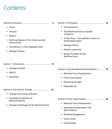 海军作战计划是一个以受众为中心的概念,它描述了海上力量对ISDR21和IOpC所提出的要求的回应。与皇家海军战略一起,它描述了海上力量的明智之举,从一个基于平台的、特定角色的、综合的舰队,到一个分布式的、作为一个系统运作的蛋白体部队。利用皇家海军的部队水平产出,这个概念描述了海上部队将如何提供国家作战优势和综合行动,以及为实现这一目标所需的变化。
