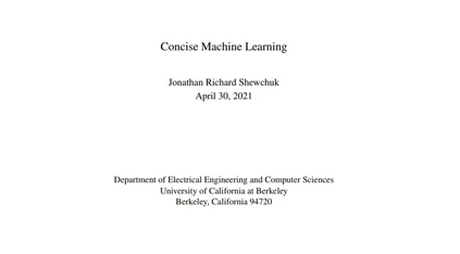 【导读】本文档包含加州大学伯克利分校机器学习Jonathan Shewchuk入门课程的课堂讲稿。它涵盖了许多分类和回归的方法,以及聚类和降维的方法。简洁明了,是非常合适的机器学习入门学习材料。
