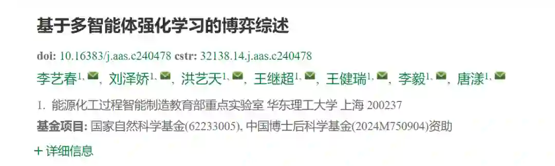 摘要: 多智能体强化学习作为博弈论、控制论和多智能体学习的交叉研究领域, 是多智能体系统研究中的前沿方向, 赋予了智能体在动态多维的复杂环境中通过交互和决策完成多样化任务的能力. 多智能体强化学习正在向应用对象开放化、应用问题具身化、应用场景复杂化的方向发展, 并逐渐成为解决现实世界中博弈决策问题的最有效工具. 本文对基于多智能体强化学习的博弈进行了系统性综述. 首先, 介绍了多智能体强化学习的基本理论, 梳理了多智能体强化学习算法与基线测试环境的发展进程. 其次, 针对合作、对抗以及混合三种多智能体强化学习任务, 从提高智能体合作效率、提升智能体对抗能力的维度来介绍多智能体强化学习的最新进展, 并结合实际应用探讨了混合博弈的前沿研究方向. 最后, 对多智能体强化学习的应用前景和发展趋势进行了总结与展望. http://www.aas.net.cn/cn/article/doi/10.16383/j.aas.c240478