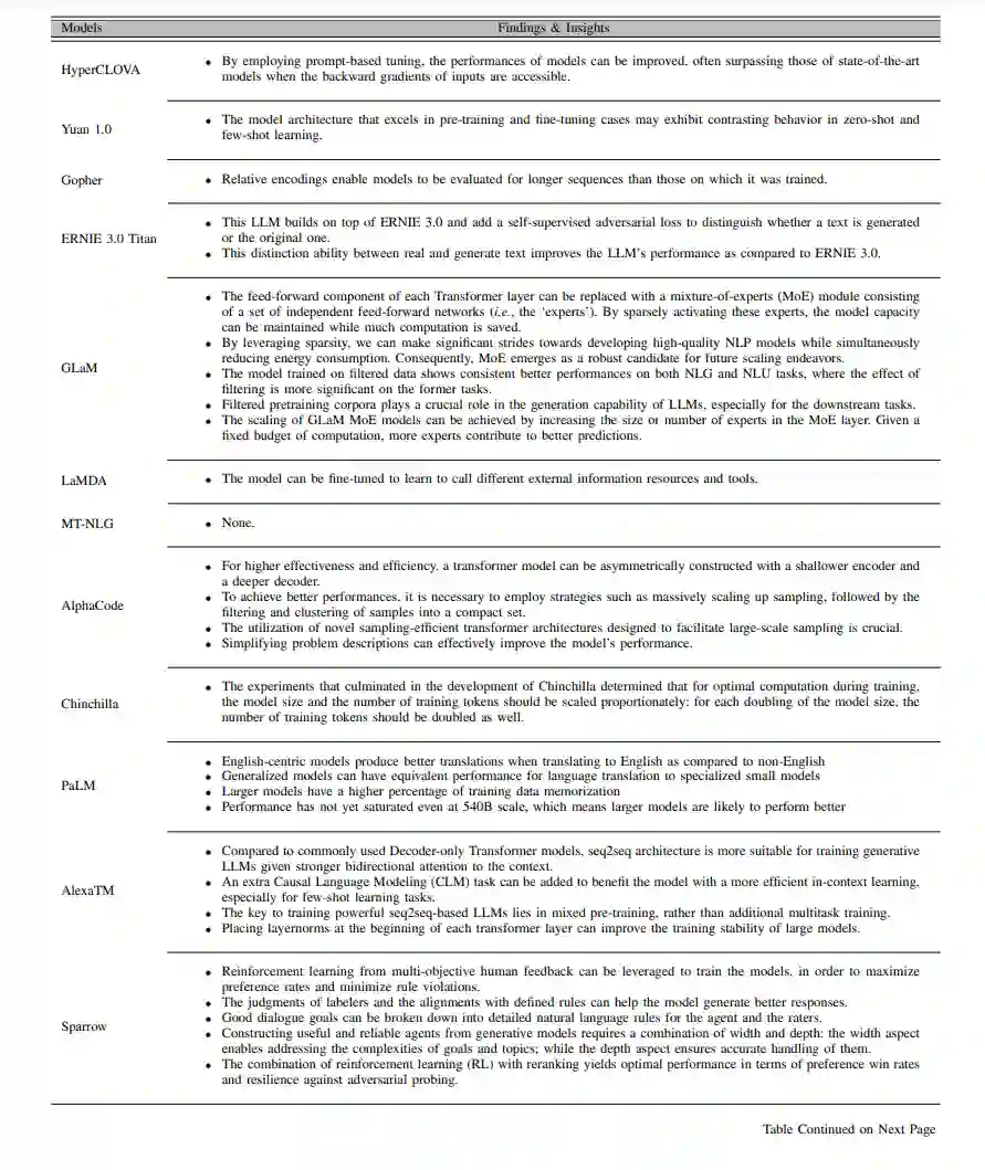 据我们所知,这是第一篇讨论LLMs细节的全面调查论文。 我们对各种LLMs架构及其分类进行了深入分析。此外,我们还讨论了LLMs的基础知识,以使对LLMs不熟悉的读者能够自给自足,从而使论文更具生产力。 我们的论文侧重于为每一个LLM模型提供全面的细节,并涵盖了如架构修改、训练目标、使用的数据集、稳定训练的策略、关键发现、建议以及训练过程中遇到的挑战等方面。 我们的目标是在我们的论文中总结这些关键细节,以帮助研究人员在他们的工作中确定更好的架构和训练方法。