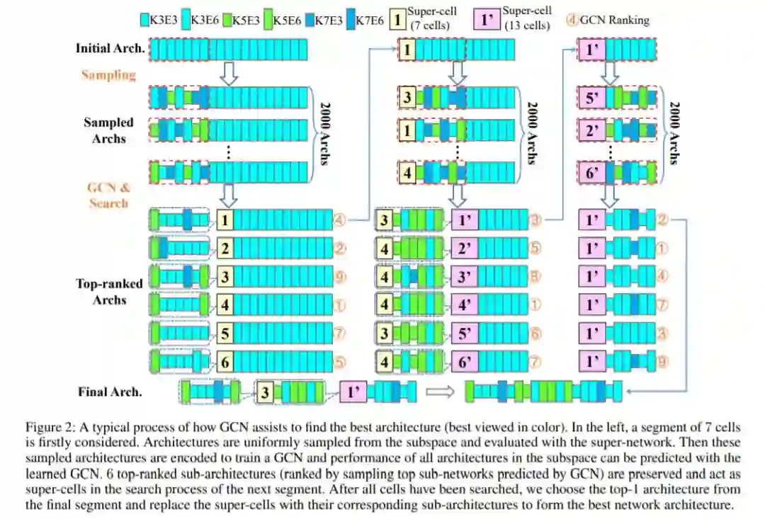 权值共享的神经结构搜索通过训练一个包含所有分支的超网络来复用不同操作上的计算量,以子网络采样的方式评估网络结构,大幅度提高了搜索速度。然而,这种子网络采样的方式并不能保证子网络的评估性能准确反映其真实属性。本文认为产生这一现象的原因是使用共享权值构建子网络的过程中产生了权值失配,使得评估性能中混入了一个随机噪声项。本论文提出使用一个图卷积网络来拟合采样子网络的评估性能,从而将这个随机噪声的影响降至最低。实验结果表明,使用本方案后,子网络的拟合性能与真实性能间的排序相关性得到有效提高,最终搜索得到的网络结构性能也更加优异。此外,本方案通过图卷积网络拟合了整个搜索空间中子网络的评估性能,因此可以很方便地选取符合不同硬件约束的网络结构。