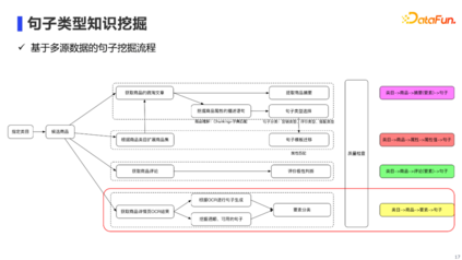 句子类型知识的挖掘还是比较复杂的,它需要从不同数据源中进行句子挖掘,以保证挖掘到的句子具有多样性。具体来说,我们主要会从三类数据源中进行句子挖掘: 第一类是阿里内部的商品微淘文章:我们一方面使用摘要算法,提取文章中描述的商品摘要;另一方面,我们也会针对文章中的句子,构建pipeline提取出能够描述商品属性的句子。 第二类是商品评论:我们主要使用极性分类器,提取商品的好评句子。 **第三类是商品详情页:**这里我详细展开说一下商品详情页的挖掘流程。