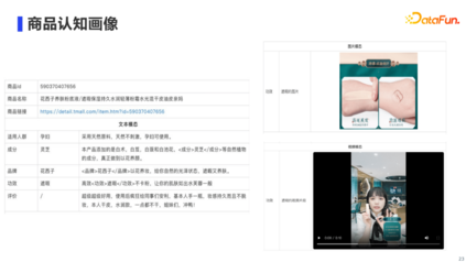 对于商品内容推荐的落地场景,我们主要考虑在直播间中,主播和听众之间是1vN的关系,即同一个主播在同一个时段内面对不同用户只能讲解同一种内容。然而,对于同一个时间段进入直播间的用户,他们的诉求可能是不尽相同,有人希望了解商品的用料材质,有人希望了解商品的使用方法。 因此,基于不同的用户画像,我们会为其推荐多模态图谱中不同的商品多模态内容,从而更好满足不同用户的诉求。 03