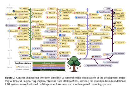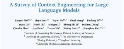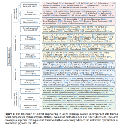 摘要: 大型语言模型(LLMs)的性能从根本上取决于推理过程中提供的上下文信息。本综述介绍了“上下文工程”这一正式学科,它超越了简单的提示设计,涵盖了对LLMs信息负载的系统化优化。我们提出了一个全面的分类法,将上下文工程分解为其基础组件和将这些组件整合进智能系统的复杂实现。首先,我们审视了基础组件:(1)上下文检索与生成,包括基于提示的生成和外部知识获取;(2)上下文处理,解决长序列处理、自我优化以及结构化信息整合;(3)上下文管理,涵盖了记忆层次、压缩与优化。接着,我们探讨了这些组件如何架构化整合,形成复杂的系统实现:(1)检索增强生成(RAG),包括模块化、智能体化和图增强架构;(2)记忆系统,实现持久交互;(3)工具集成推理,用于函数调用与环境交互;(4)多智能体系统,协调通信与编排。通过对超过1400篇研究论文的系统分析,本综述不仅为该领域建立了技术路线图,还揭示了一个关键的研究空白:当前模型与上下文工程的增强使其在理解复杂上下文方面表现出色,但在生成同样复杂的长篇输出方面仍存在明显限制。解决这一空白是未来研究的核心任务。最终,本综述为研究人员和工程师提供了一个统一的框架,推动上下文感知AI的发展。