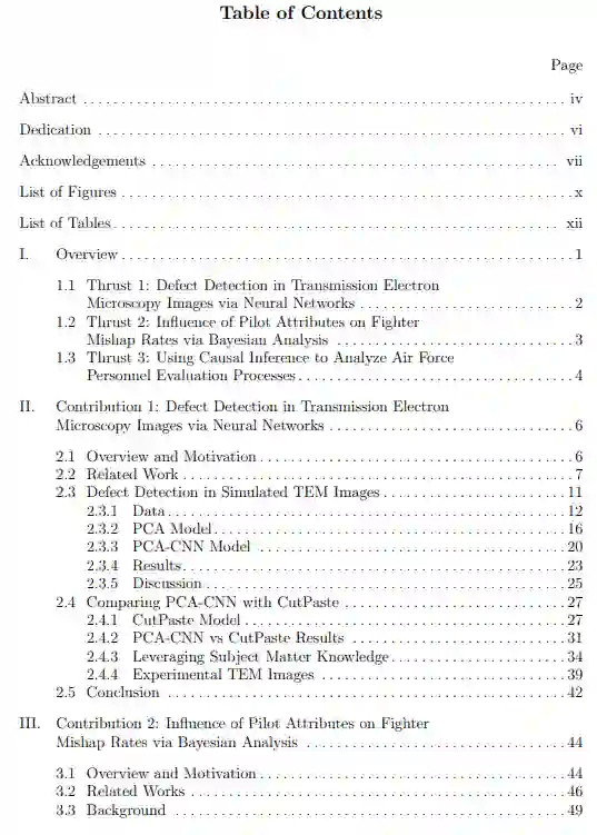 在这项研究中,我们开发了机器学习和统计方法,这些方法通过纳入主题知识量身定做空军应用。特别是,我们开发了将主题知识纳入神经网络、贝叶斯回归和结构性因果模型的技术。这些技术是在三个独立的应用领域中开发的:在晶体材料的透射电子显微镜(TEM)中定位点缺陷;估计战斗机飞行员群体的属性与飞行事故率之间的关系;以及分析空军评估过程。