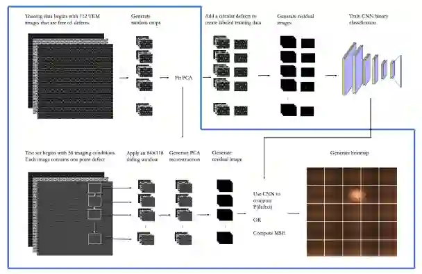 我们的第一个贡献是使用主成分分析(PCA)和卷积神经网络(CNN)在结晶材料的TEM图像中定位点缺陷的新方法。值得注意的是,PCA-CNN方法的设计利用了关于晶体材料中点缺陷的知识。此外,该方法是一种自我监督的方法,在没有标记的点缺陷图像的情况下进行训练,因此,代表了一种新的方法学贡献。我们表明,定制的PCACNN方法在模拟和实验的TEM图像上都优于CutPaste,这是一种先进的人工智能(AI)模型,用于缺陷定位方法。