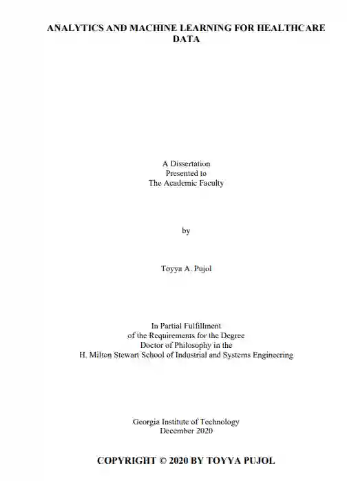 预计医疗数据量的增长速度将超过任何其他行业。这为开发严格的分析和机器学习方法以应用于大型健康数据集创造了需求。这些包含个人身份信息的数据集带有隐私保护,对数据的可见性及其发布进行了限制。此外,病人数据往往包含复杂的关系,如非线性关系和异质性。这些特点会给医疗数据的分析带来独特的复杂性,并限制了开箱即用的解决方案的使用。值得注意的是,医疗保健研究具有令人难以置信的高风险,它可能是生命和死亡之间的区别,对个人的生活质量和医疗有重大影响。由于这些原因,开发严格的解决方案就显得更为关键。这篇论文的重点是应用分析学和机器学习来解决基于医疗数据的应用研究问题。