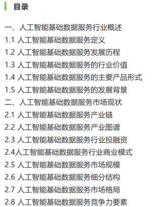 《2019年中国人工智能基础数据服务白皮书》由艾瑞和百度数据众包联合发布,报告主要分析中国人工智能基础数据服务的现状以及未来发展方向,重点讨论人工智能基础数据服务的价值、发展背景、产业链、市场空间和应用场景。