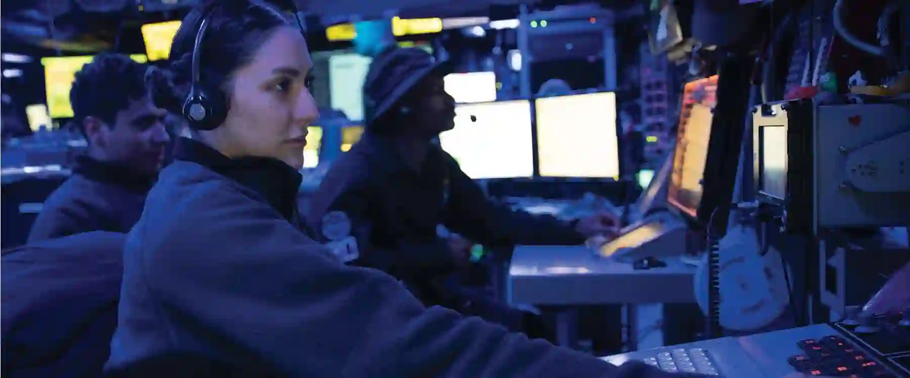 图:一名密码技术员在美国海军马金岛号(LHD-8)上监控电子战 (EW) 传感器。人工智能和机器学习的进步可以实现认知 EW 系统--实时学习和思考系统,它不会像人类操作员那样分心。 美国海军(Dominic Delahunt)
