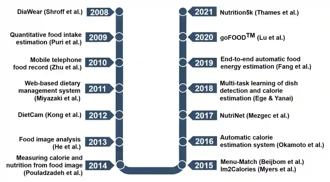 营养不良,如营养不良、超重和肥胖等,越来越被认为是最大的健康和社会挑战之一。2020年,3900万5岁以下儿童因摄入高脂肪和高能量食物等不健康饮食而超重或肥胖。根据世界卫生组织下属国际癌症研究机构(IARC)的研究,目前有充分的证据表明体脂过多与13种癌症的风险增加有关,例如结肠直肠癌、肾癌、食管癌等。幸运的是,通过饮食评估可以预防肥胖和许多慢性病,饮食评估可以监测日常食物摄入并控制饮食习惯。此外,我们可以利用这些饮食数据来分析饮食模式与某些疾病之间的关系,并实现个性化营养。因此,饮食评估已成为计算机视觉、医学、营养健康等多个领域广泛关注的焦点。