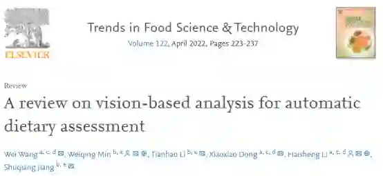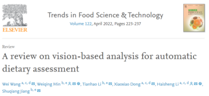 2022年2月,北京工商大学计算机学院李海生教授团队:王薇(1作),董笑笑,李海生*(通讯)和中国科学院计算技术研究所蒋树强研究员团队:闵巍庆*(2作,通讯),李天浩,蒋树强,联合在**Trends in Food Science & Technology **(Q1,IF:12.563)上发表题为“A review on vision-based analysis for automatic dietary assessment”的综述性论文。