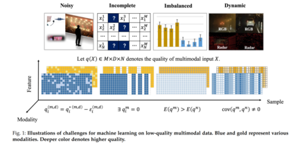 https://arxiv.org/abs/2404.18947 我们对世界的感知基于多种模态,例如触觉、视觉、听觉、嗅觉和味觉。即使某些感官信号不可靠,人类也能从不完美的多模态输入中提取有用线索,并进一步拼凑出正在发生事件的整个场景【1】。随着感知技术的发展,我们可以轻松收集各种形式的数据进行分析。为了充分释放每种模式的价值,多模态融合作为一种有前景的范式出现,通过整合所有可用线索进行下游分析任务,以获得精确和可靠的预测,例如医学图像分析、自动驾驶车辆【2】【3】和情感识别【4】【5】【6】。直观地说,融合来自不同模式的信息提供了探索跨模态相关性并获得更好性能的可能性。然而,人们越来越认识到,广泛使用的AI模型常常被低质量数据中的假相关性和偏见所误导。在现实世界中,由于意外的环境因素或传感器问题,不同模态的质量通常存在差异。一些最近的研究实证和理论上表明,传统的多模态融合可能在野外的低质量多模态数据上失败,例如不平衡【7】【8】【9】【10】、噪声【11】或甚至损坏【12】的多模态数据。为了克服这一限制,并向实际应用中强大且通用的多模态学习迈进一步,我们确定了低质量多模态数据的特性,并专注于现实世界多模态机器融合的一些独特挑战。我们还强调了可能有助于使多模态融合在开放环境中更加可靠和值得信赖的技术进展。在本文中,我们识别并探索了围绕低质量多模态数据的多模态融合的四个核心技术挑战。它们总结如下(也在图1中直观展示): (1) 噪声多模态数据。第一个基本挑战是学习如何减轻多模态数据中任意噪声的潜在影响。高维多模态数据往往包含复杂的噪声。多模态数据的异质性使得识别和减少潜在噪声成为挑战,同时也提供了通过探索不同模态之间的相关性来识别和减少噪声的机会。 (2) 不完整的多模态数据。第二个基本挑战是如何学习带有部分缺失模态的多模态数据(即不完整的多模态数据)。例如,在医疗领域,即使是患有同一疾病的患者也可能选择不同的医疗检查,产生不完整的多模态数据。开发能够处理不完整多模态数据的灵活且可靠的多模态学习方法是一个具有挑战性但充满希望的研究方向。 (3) 不平衡的多模态数据。第三个基本挑战是如何减轻模态间偏差和差异的影响。例如,视觉模态通常比听觉模态更有效,导致模型采取捷径且缺乏对音频的探索。尽管现有融合方法表现出有希望的性能,但它们可能无法在某些偏好特定模态的应用上比单模态主导模型表现更好。 (4) 质量动态变化的多模态数据。第四个基本挑战是如何适应多模态数据的质量动态变化性质。在实践中,由于不可预见的环境因素或传感器问题,一个模态的质量通常会因不同样本而变化。例如,在低光或逆光条件下,RGB图像的信息量不如热成像模态。因此,在实际应用中,意识到融合中的质量变化并动态整合多模态数据是必要的。 为了应对这些日益重要的多模态融合问题,本研究系统地组织了通过几个分类体系的关键挑战。与以往讨论各种多模态学习任务【13】【14】的相关工作不同,这项综述主要关注多模态学习中最基本的问题以及在下游任务中低质量多模态数据所引起的独特挑战,包括聚类、分类、对象检测和语义分割。在以下部分中,我们通过最近的进展和多模态融合面临的技术挑战详细介绍了这一领域:在噪声多模态数据上的学习(第2节)、缺失模态插补(第3节)、平衡多模态融合(第4节)和动态多模态融合(第5节)。第6节提供了一个作为结论的讨论。 在噪声多模态数据上的学习
