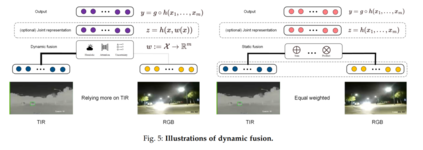 当前的多模态融合方法常基于一种假设,即多模态数据的质量是静态的,这在现实世界场景中并不总是成立的。处理具有动态变化质量的多模态数据是多模态智能系统不可避免的问题。由于意外的环境因素和传感器问题,一些模态可能会遭受可靠性差和丢失任务特定信息的问题。此外,不同模态的质量会根据场景动态变化,如图5所示。这一现象激发了一种新的多模态学习范式,即动态多模态融合,其目标是适应多模态数据质量的动态变化并有选择性地整合任务特定信息。在本节中,我们关注动态多模态融合的挑战,并将当前文献中的进展分类为三个主要方向,包括启发式、基于注意力和意识到不确定性的动态融合。
