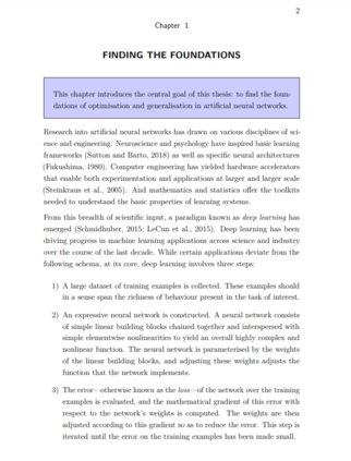 本文的目标是发展人工神经网络学习的优化和泛化理论基础。这篇论文涉及两个核心问题。给定训练数据和网络架构:1)哪种权重设置对未见数据的泛化效果最好,为什么?2)应该使用什么优化器来恢复这个权重设置?