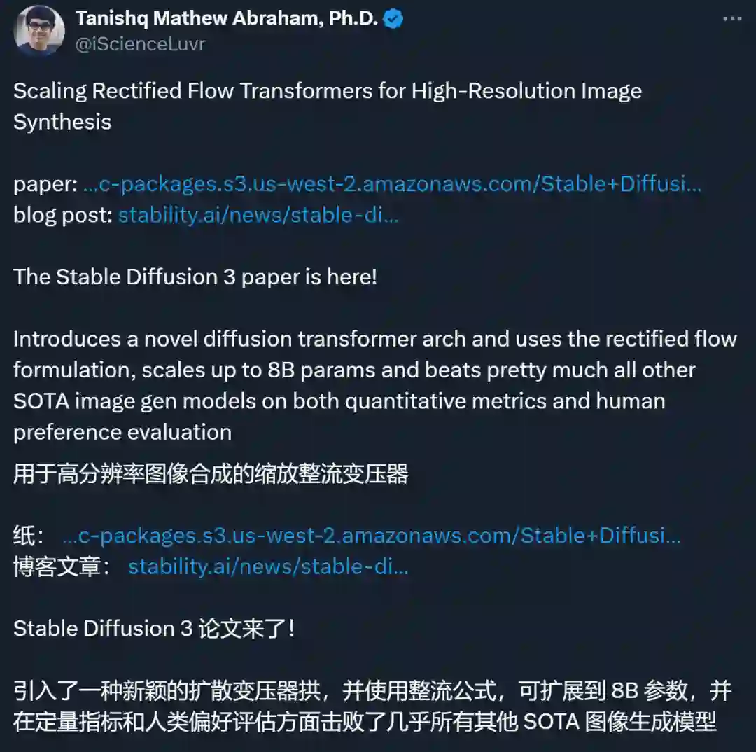 在论文中,Stability AI 透露了关于 Stable Diffusion 3 的更多细节。