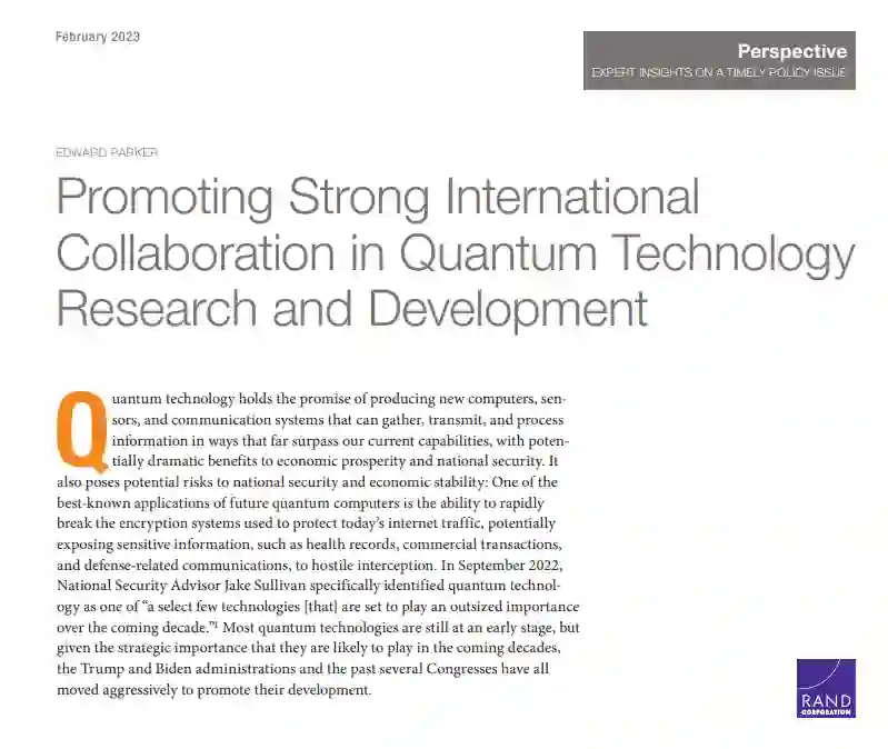 本视角对当前的量子技术状况以及与盟国和伙伴国的研究合作的战略重要性(和挑战)做了一个广泛的、主要是非技术性的概述。它包括对这一领域五个关键政策领域的讨论--人才流动、标准制定、供应链、出口控制和技术方法多样化--最后提出了一个理想的战略最终状态的建议,该建议可作为关于这一主题的政策决定的一个有用的统一框架。