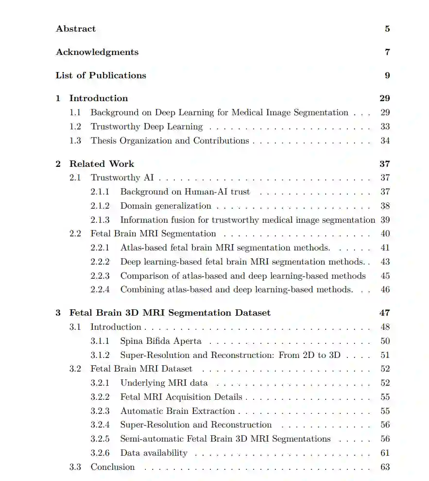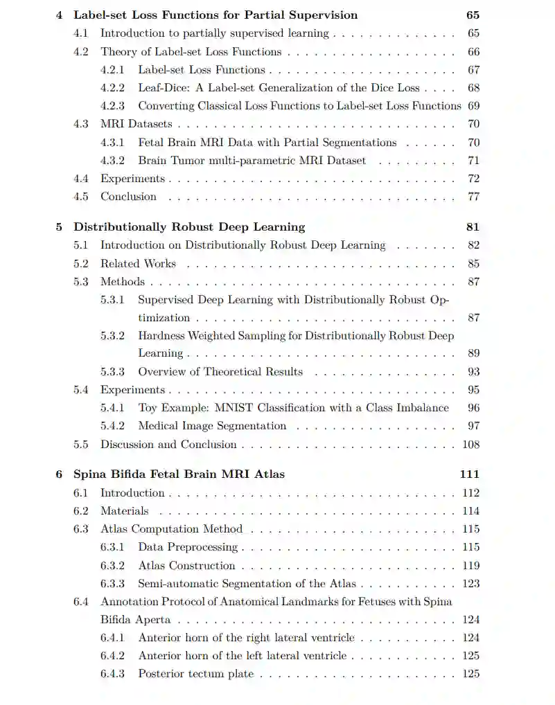 我们引入了一种使用分布鲁棒优化(DRO)训练深度神经网络的优化算法。我们建议使用DRO来改善在训练数据集中代表不足的人群上训练后的深度神经网络的泛化能力。当应用于深度神经网络时,我们正式证明了算法的收敛性。我们还对DRO和最坏情况性能最大化之间的联系给出了数学洞见。我们基于Dempster-Shaffer理论提出了一种可靠的深度学习医学图像分割方法。可靠的AI是一个在社会学中越来越多地被讨论的概念,在安全部署深度学习等新兴技术的指南中也有涉及。我们提出了第一个具体的可靠AI医学图像分割的数学框架和实现。我们的方法旨在使深度学习分割算法根据专家知识衍生出来的标准(称为信任契约)而变得可靠,这些标准符合放射科专家在手头的分割任务中的期望。我们通过对几个以胎儿大脑3D T2w MRI分割为重点的分割任务进行说明和评估,提出了这些方法。胎儿大脑MRI的分割对于研究正常和异常的胎儿大脑发育至关重要。可靠的分析和评估胎儿大脑结构也可能支持中枢神经系统病理诊断,胎儿手术的患者选择,结果的评估和预测,因此也有助于对父母进行咨询。胎儿大脑3D T2w MRI分割呈现多种挑战,这些挑战与本论文旨在减轻的当前深度学习算法的限制相一致。手动分割的胎儿大脑3D T2w MRI是稀缺的,他们的注释水平也有所不同。临床中心之间使用的T2w MRI协议存在变化。最后但并非最不重要的,胎儿大脑解剖在孕龄和正常与异常的胎儿大脑解剖之间存在惊人的变化。