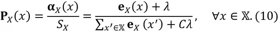 分配给x的信念质量表示对x为真的支持,不确定性质量可以解释为分配给整个域的信念质量。因此,主观逻辑通过根据先验分布将不确定性质量重新分配到域内的每个单个值,从而提供了一个符合传统概率理论加法要求的投影概率,如下所示: