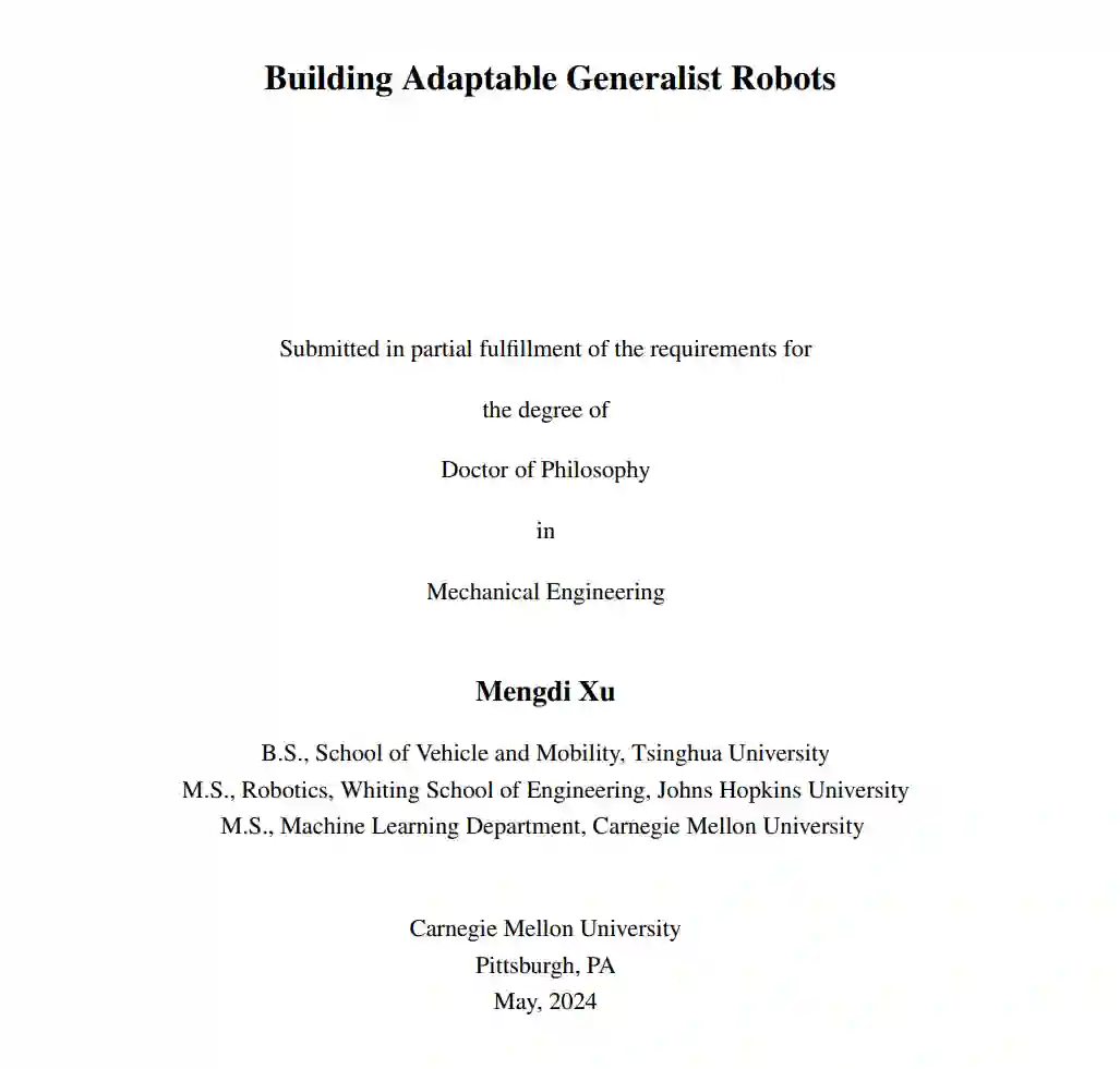 本论文主张,除了可扩展性外,强大的适应能力对于提升在现实世界应用中的泛化能力至关重要。论文探讨了构建能够在部署时有效适应的机器人的策略,重点关注数据效率、参数效率和鲁棒性。研究深入探讨了各种自适应学习方法,包括在有限数量的示范条件下进行的上下文机器人学习、自主的持续强化学习以揭示机器人任务的结构,以及使用大型基础模型构建具身代理。这些方法展示了显著的潜力,使机器人能够在各种应用中获取新的运动技能,并通过创造性地使用工具解决复杂的、长时间跨度的物理难题。