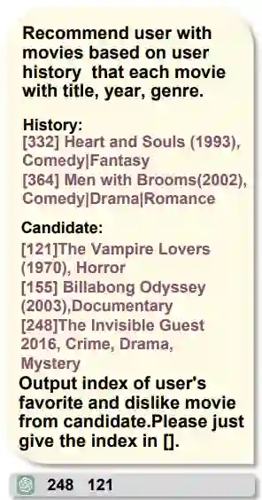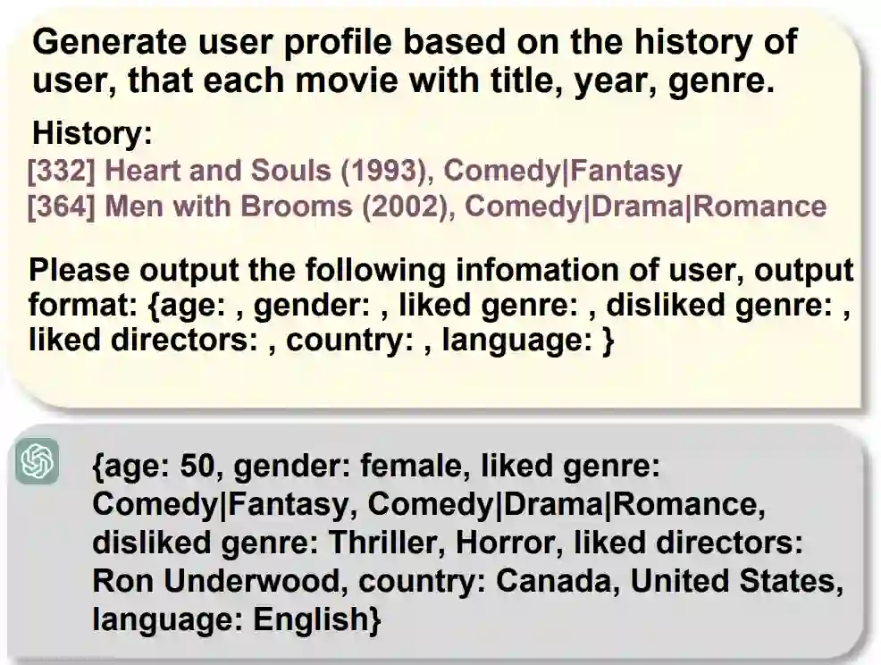 利用和user节点相连的item节点的信息构造能够预测其他可能与user节点相连的item节点的prompt。这种方式不是在向量空间的消息传递,而是基于自然语言空间的建模。这种方式有两个优势:(1) 它使GNNs能够充分利用数据集中的内容。(2) 它直观地通过自然语言反映连边的关系。