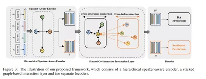 在对话系统中,对话行为识别和情感分类是捕获对话者意图的两个相关任务,其中对话行为可以捕获显式的意图,情感可以表达隐性的意图。其中上下文信息(contextual information)和相互交互信息(mutual interaction information)是这两个相关任务的关键因素。但是,现有方法都无法同时考虑这两个重要的信息。为了解决这个问题,在本文中,我们提出了一个协同交互图注意力网络(Co-GAT)来联合建模这两个任务。核心模块是我们提出的协同交互图交互层,可以在统一的图网络中构建跨历史连接(cross-utterances connection)和跨任务连接(cross-tasks connection)。我们的模型在两个公开的数据集达到了SOTA性能。此外,我们发现上下文和相互交互信息的贡献与预训练模型并不完全重叠,在多种预训练模型上(BERT,RoBERTa,XLNet)均取得了性能提升。