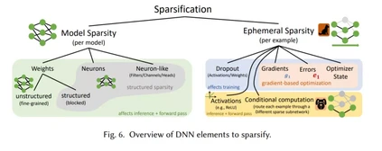 我们综述的结果表明,今天的稀疏化方法可以导致模型尺寸减少10-100倍,并在计算、存储和能源效率方面获得相应的理论收益,而不会显著降低精度。如果这些加速是在高效的硬件实现中实现的,那么所获得的性能可能会导致一个阶段的变化,使更复杂的、可能是革命性的任务得到实际解决。此外,我们还观察到,在稀疏化方法方面的进展速度正在加快,因此,即使在我们编写本论文的最后几个月里,也发表了一些改进现有技术的新方法。