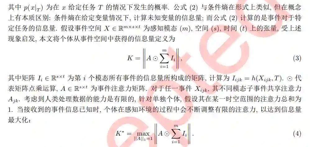 从公式 (4) 中可看出, 当注意力集中在模态密集的时空事件时, 获取的信息量达到最大值. 因此, 个 体可以利用多模态时空数据获取更多信息