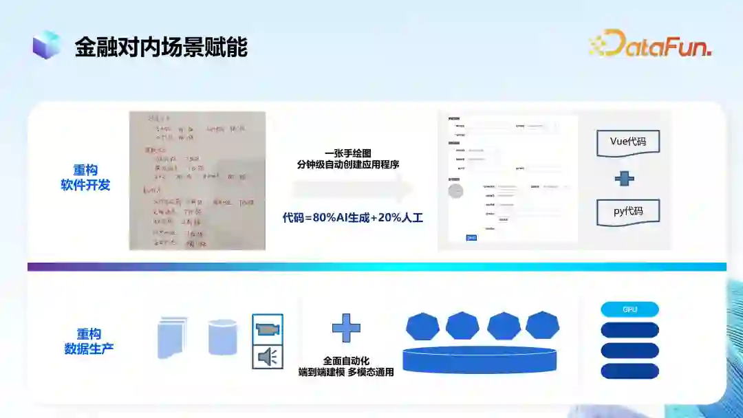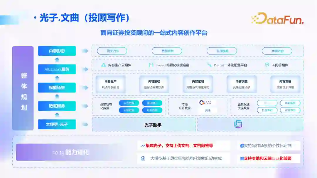 在金融领域,恒生电子涉及到的业务面较多,涵盖客服、投顾营销、风控运营、投研、投行、量化交易等诸多方面。每条业务线都对大模型的应用场景进行了梳理,也挖掘出了部分场景可以采用大模型来赋能,其中一些是新物种,即之前由人来完成且效率不高,使用大模型可大大提高效率。还有一些属于原有系统,通过引入大模型来提升用户交互体验。(2)金融对内场景赋能****