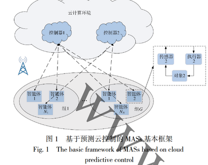 随着计算机科学技术、人工智能技术和网络控 制技术的飞速发展, 多智能体系统(multi -agent systems, MASs)引起了广泛的关注, 已应用于智能电 网[1-3]、智能交通[4]、自动驾驶[5]、传感器网络[6]等领 域, 一致性问题是 MASs 的基本问题[7-13] , 该问题旨在 通过与邻居交换信息来使所有智能体达成一致. 大 量的 MASs 通过无线网络交换信息, 不可避免地受到 噪音信号的干扰. 扰动的存在会影响系统的性能, 甚 至严重破坏系统的稳定性. 扩张状态观测器作为自 抗扰控制器的核心, 可用于同时估计状态和扰动. 然 而, 在考虑网络延迟的情况下, 如何较精确地估计系 统状态和扰动需要进一步研究. 在 MASs 中, 随着智能体结构的变化和规模的增 加, 数据的实时处理和计算的速度需要得到严格的 保障, 使用传统分析方法很难处理这样的实时大数 据和计算. 同时, 控制系统中的海量数据将增加网络 的通信负担和系统的计算负担, 一个高效的带宽分 配方案就变得尤为重要. 此外, 由于数据是通过网络 传输的, 网络时延对 MASs 的影响至关重要, 需要设 计相应的控制策略以主动补偿网络时延. 因此, 在大 规模的云控制系统中, 合理分配带宽以充分利用通 信资源非常重要, 这有助于提高效率, 减少不必要的 资源浪费;另一方面, 如何补偿 MASs 存在的网络时 延和受到的扰动也是一个关键问题. 基于以上分析, 研究了一种考虑网络时延和未 知扰动的 MASs 的带宽分配和预测云控制方案. 本文 的贡献总结如下: 1)对于具有未知扰动的 MASs, 提出了一种基于 预测的扩张状态观测器, 以估计每个智能体受到的 扰动并设计控制器进行补偿. 2)Stackelberg 博弈方法用于解决 MASs 的带宽 分配问题, 该问题包含预测云控制器之间的非合作 博弈和智能体之间的演化博弈. 3)提出了一种预测云控制方案, 以补偿受带宽 分配影响的网络时延和扰动. 并给出了保证 MASs 稳 定性和一致性的充分条件.