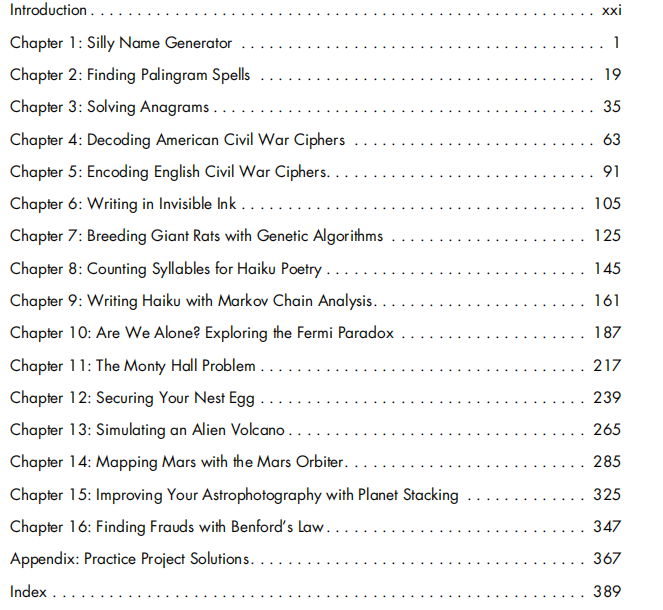 您可以将其视为第二本Python书。它旨在遵循和补充完整的初学者书籍或入门课程。本书中所有代码都带有注释和解释。这些项目适合那些想要使用编程来进行实验,测试理论,模拟或只是开心的人。在研究项目时,您将增加对Python库和模块的了解; 了解更多快捷键,内置功能和有用的技术; 并练习设计,测试和优化程序。 此外,您还可以将自己所做的与实际的应用程序,数据集和问题相关联。