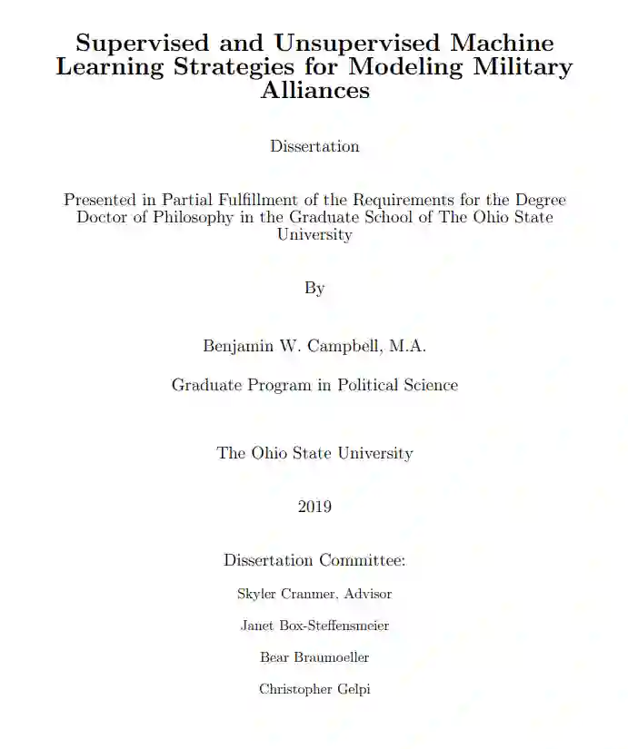 在建立国家间军事联盟模型时,学者们会做出简化假设。然而,大多数人都认识到这些经常被引用的假设过于简单。本论文利用监督和非监督机器学习的发展来评估这些假设的有效性,并研究它们如何影响对联盟政治的理解。本文发现的一系列发现有助于更好地理解联盟的原因和后果。