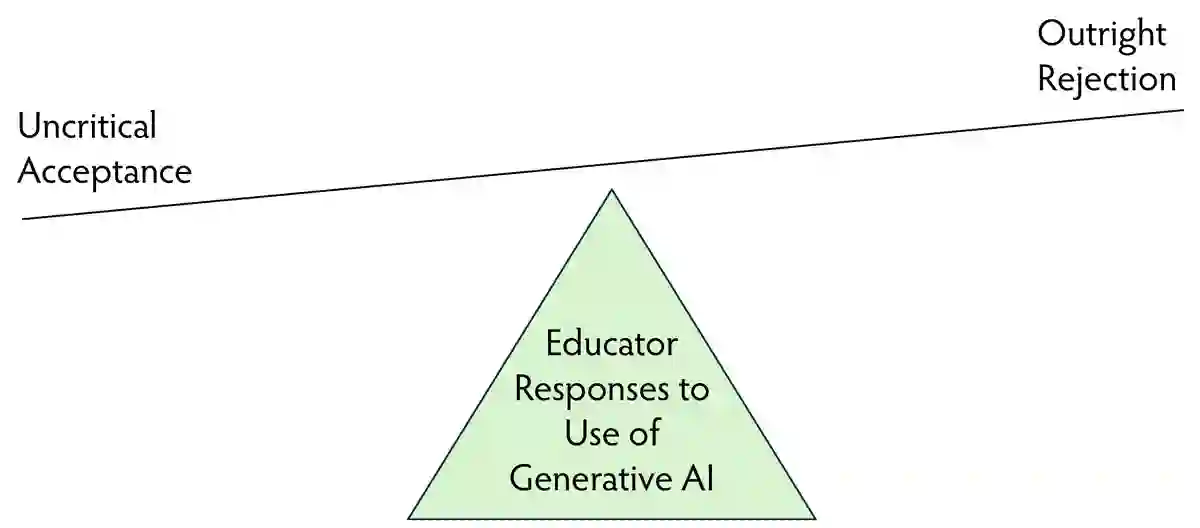 对于 ChatGPT 的出现,另一种极端的反应是不加批判地接受生成式人工智能,将其视为最新的计算器或文字处理器。在这种观点中,生成式人工智能只是一种最新技术,只要教职员工加入进来,就能改善高等教育。非批判性支持者希望在整个教育领域毫无疑问地采用生成式人工智能。