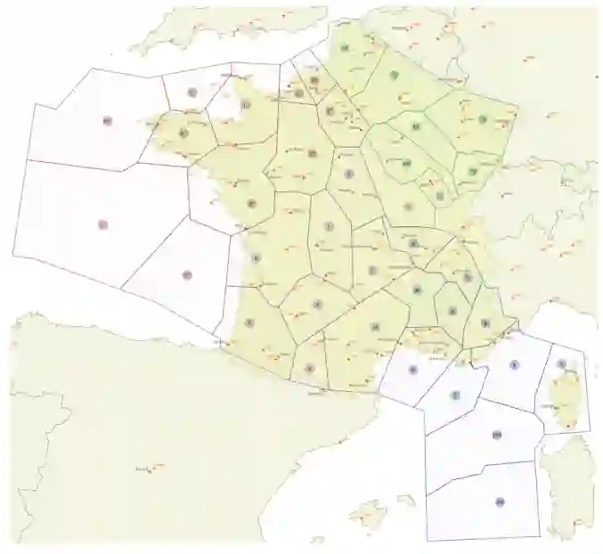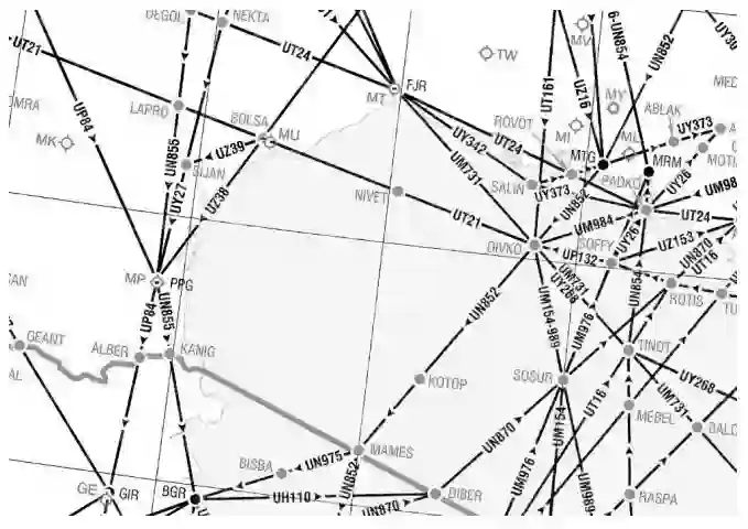 空中交通管理 (ATM) 是一个庞大而复杂的领域 [1],涵盖了为确保空中交通的安全性和流动性而开展的所有活动。简而言之,ATM 旨在有效管理和最大限度地利用可用的不同资源,例如空域及其细分,如扇区(见图 1)、航线(见图 2)、机场、跑道——由资源的用户——例如飞机、航空公司——在他们使用资源的任何时间范围内——即在机场的滑行阶段,或通过三重爬升、巡航简化的任何飞行阶段,下降——同时确保飞行安全 [2]。这项任务是通过管理资源来实现的,即空域管理 (ASM),管理飞机飞行前和飞行期间的全局需求,即空中交通流量和容量管理 (ATFCM),以及管理避免飞机之间的间隔损失,即,避免一架飞机进入另一架飞机的隔离区(见图 3)——并向飞行的飞机提供本地信息,即空中交通管制 (ATC) [3]。