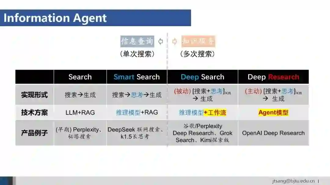 Information agent从基于单次搜索的信息查询,发展到基于多次搜索的知识服务。
