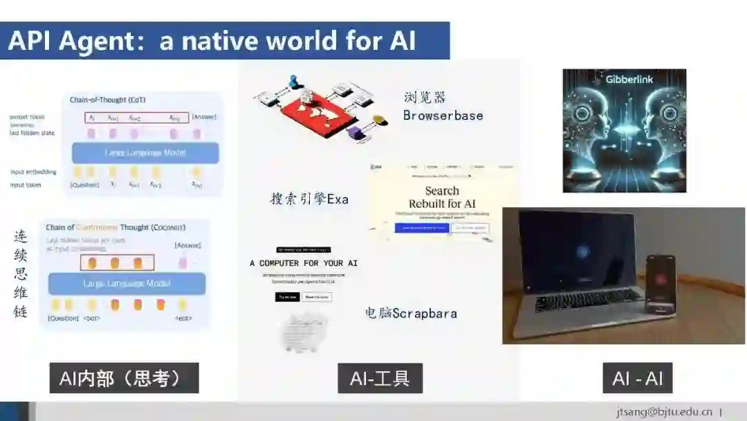 相比物理世界改造的困难,数字世界的改造要相对容易些。API Agent则希望为AI创建一个原生的世界,包括为AI专门设计的工具、交流语言等。