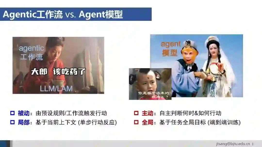 端到端训练的Agent模型,由于面向任务目标进行了策略优化,其选择的工具和工具使用参数是面向全局任务目标生成的。 相比之下,提示词触发的agentic工作流方法,模型虽然也有一定的自主灵活性,但行动是单步进行的,只能根据局部上下文做出选择。